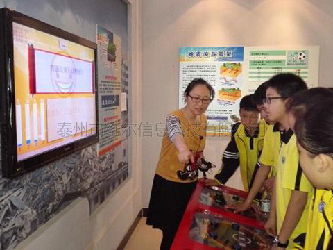 (十一)地震知識(shí)搶答(2人) 綜述: 本展項(xiàng)是運(yùn)用知識(shí)搶答這種方式讓學(xué)生在參與和競(jìng)爭(zhēng)游戲中學(xué)習(xí)地震知識(shí),增加學(xué)習(xí)的趣味。本展項(xiàng)是變枯燥的科普知識(shí)為生動(dòng)形象的“實(shí)體”,讓學(xué)生在快樂(lè)中接受。展品2人參與,多人觀看。 1.性能要求 1.1觀眾通過(guò)搶答方式選擇試題答案,系統(tǒng)判斷答案的對(duì)錯(cuò)并作出相應(yīng)的提示。 1.2 搶答臺(tái)由兩個(gè)搶答終端組成,每個(gè)搶答終端臺(tái)面是圓形,上有兩個(gè)觸摸區(qū)域,分別代表ABCD四個(gè)答案,觀眾觸摸來(lái)?yè)尨稹o@示器顯示系統(tǒng)判斷答案的對(duì)錯(cuò)。 2.配置要求: 2.1計(jì)算機(jī)系統(tǒng):聯(lián)想啟天M4360 1臺(tái) 配置:cpu:Intel G2030、內(nèi)存:2G DDRIII、硬盤(pán):500G。 2.2 顯示系統(tǒng):創(chuàng)維46寸液晶電視機(jī) 1臺(tái) 屏幕尺寸:46英寸,屏幕比例:16:9,分辨率:1920×1080,支持格式:1080p(全高清),音效系統(tǒng):SRS虛擬環(huán)繞內(nèi)置道數(shù)字音響。 2.3 搶答終端 2套 2.4材料要求: 高分子復(fù)合材料, 鐵管 Q235,有機(jī)板,木工板。 3.技術(shù)參數(shù) 3.1 展品尺寸1.2m (長(zhǎng))×2.0m(寬)× 2.4m(高) 3.2凈占地面積:2.4㎡ 3.3 電源: 單相220V 1KW.